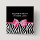 Ein niedlicher und trendy Zebradruckmädchen-Babyduschenknopf mit modernen rosa und schwarzen Zebrastreifen und mit einem girly rosa Druckband verschönert. Personifizieren Sie, indem Sie den Namen der Mutter hinzufügen, um zu diesem schicken schwarzen und rosa Entwurf zu sein. Vervollkommnen Sie Babygeburtsmitteilung!