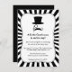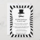 Schauen Sie scharf richtig, prim und mit einer Touch von wunderlichem und Spaß mit dieser trendy und Babyjungen-Duscheneinladung des Chic schwarzen. Sie kennzeichnet ein übersichtliches Design der Elemente eines Herrn, der einen Zylinder, ein einteiliges Glas des Monocle Leseund einen gelockten Schnurrbart miteinschließt. Schwarzweiss ist kontrastierend hervorragend, einzigartig und für eine Babypartyeinladung. Personifizieren Sie leicht mit Ihren Partysonderkommandos.
