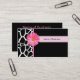 Verbreiten Sie das Wort über Ihr fantastisches neues Geschäft mit diesen niedlichen und trendy Schwarzweiss-Giraffenmusterdruck-Geschäftskarten mit einer girly rosa Gänseblümchen-Blume.