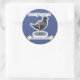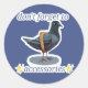 Ein niedlicher Aufkleber einer Taube, die in einer Brotscheibe feststeckt, um Sie daran zu erinnern, immer Geschichten.