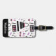 Ein modischer und stilvoller Gepäckanhänger für die reisende Fashionista-Diva! Das Muster im Farbentwurf von rosa, von Schwarzem und von Lila wird unter Verwendung der verschiedenen Kosmetik, des Makes-up und der Modezusätze wie Handtasche mit Zebradruck, Wimperntusche, Nagellacken, Sternohrringen, rosa Sonnenbrilleschatten, Kamm, Lippenstiften und Lippenglanzen, Bürste geschaffen und errötet Palettenkasten. Personifizieren Sie mit Mädchennamen. Der Text "Fashionista" ist jedoch nicht editable.