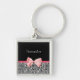 Ein trendy Schwarzweiss-Leoparddruck-Schlüsselanhänger mit einem niedlichen rosa Bandbogen eingewickelt wie ein Geschenk. Personifizieren Sie, indem Sie Ihren Namen addieren. Vervollkommnen Sie Geschenk für ein jugendlich girly Mädchen!