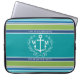Modischer Monogramm-Anker-Lorbeer-Kranz Stripes Laptopschutzhülle