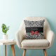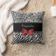 Ein modisches Schwarzweiss-Tiermusterkissen mit modernen Zebrastreifen auf dem unteren und stilvollen Leoparddruck auf die Oberseite und mit einem girly roten Band verschönert gebunden in einen Bogen. Personifizieren Sie dieses schicke Modekissen der Frauen, indem Sie Ihren Namen addieren. Ebenedruckbild, NICHT tatsächliches Band.