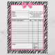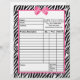 Make bestellenspaß mit diesen trendy Schwarzweiss-Zebradruckgeschenk-Butike-Auftragsformularen, die mit einem Bild eines heißen Rosas des Chic verschönert werden, beugen. Personifizieren Sie diesen girly rosa und schwarzen Tierdruckentwurf für Geschäft, indem Sie den Namen Ihrer Salon- und Kontaktinformationen hinzufügen.