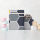 Ein elegantes Hexagonmuster in den blauen, grauen und gelben Tönen.