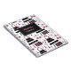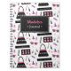 Ein modisches und stilvolles Notizbuch für den Fashionista! Unter Verwendung der Modeelemente von den Kosmetik, spielen Make-up und Mode-Accessoires wie Handtasche mit Zebradruck, Wimperntusche, Nagellacke, Ohrringe die Hauptrolle, zacken Sonnenbrilleschatten, Kamm, Lippenstifte und Lippenglanze, Bürste aus und erröten Palettenkasten. Girly in den rosa, schwarzen und lila Farben über einem weißen Hintergrund, ist dieser Entwurf für Mädchen der Alterstweens, Teens und oben groß! Personifizieren Sie mit dem Namen des Mädchens.