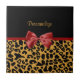 Eine trendy Schwarz- und Goldleoparddruck-Musterfliese mit einem niedlichen roten Bandbogen eingewickelt wie ein Geschenk. Personifizieren Sie, indem Sie Ihren Namen addieren. Vervollkommnen Sie Geschenk für das Chic und die elegante Frau!