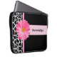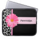 Eine Laptop-Hülse die Mode der stilvollen Frauen 15 Zoll mit einem trendy Schwarzweiss-Giraffenmuster verschönert mit einer girly rosa Gänseblümchen-Blume. Personifizieren Sie, indem Sie Ihren Namen diesem modernen Entwurf hinzufügen. Vervollkommnen Sie für den schicken Fashionista.