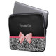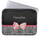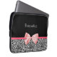 Eine trendy Schwarzweiss-Leoparddruck Neopren-Laptop-Hülse 13 Zoll mit einem niedlichen rosa Bandbogen eingewickelt wie ein Geschenk. Personifizieren Sie, indem Sie Ihren Namen addieren. Vervollkommnen Sie Geschenk für ein jugendlich girly Mädchen!