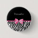 Ein trendy Schwarzweiss-Zebradruck-Musterknopf mit einem niedlichen rosa Bandbogen eingewickelt wie ein Geschenk. Personifizieren Sie, indem Sie Ihren Namen addieren. Vervollkommnen Sie Geschenk für ein jugendlich girly Mädchen!