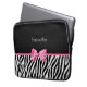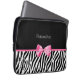 Eine trendy Schwarzweiss-Zebradruckmuster Laptop-Hülse 13 Zoll mit einem niedlichen rosa Bandbogen eingewickelt wie ein Geschenk. Personifizieren Sie, indem Sie Ihren Namen addieren. Vervollkommnen Sie Geschenk für ein jugendlich girly Mädchen!