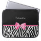 Eine trendy Schwarzweiss-Zebradruckmuster Laptop-Hülse 15 Zoll mit einem niedlichen rosa Bandbogen eingewickelt wie ein Geschenk. Personifizieren Sie, indem Sie Ihren Namen addieren. Vervollkommnen Sie Geschenk für ein jugendlich girly Mädchen!