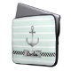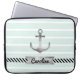 Coole Laptophülse mit grauem Watercoloranker auf einem tadellosen grünen u. weißen gestreiften Hintergrund. Sie können den Entwurf mit kundenspezifischem Text unter dem Anker auch personifizieren.