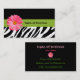 Verbreiten Sie das Wort über Ihr fantastisches neues Geschäft mit diesen niedlichen und trendy Schwarzweiss-Zebradruck-Geschäftskarten mit einem girly rosa Gerberagänseblümchen.