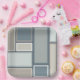 Modular Mitteljahrhundert Modernes geometrisches Muster in neutralem Blau Grau und Taupe Töne. Saubere quadratische Formen mit einer zeitgenössischen Mitte des Jahrhunderts modernen Vintagen Ästhetik. Einfaches, raffiniertes Design von Kierkegaard Design Studio.