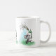 Fröhliche Maus Moe feiert die Ankunft des Frühlings mit einer Osterlilie. Original Illustration des Künstlers Liz Viztes.