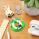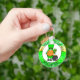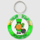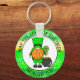 Möge das Glück der Iren mit Ihrer glücklichen Schlüsselkette sein. Niedlicher Cartoon Leprechaun Gnome mit einem glücklichen Kleeblatt und neben einem Goldtopf. Niedliches St Patrick's Day Geschenk oder Glücksbringer.