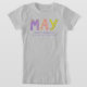 Spaß grafische Blume und Sterne, lila, Korallen und Limonen grün Doodle fett gedruckten T - Shirt. Ideal für ein personalisiertes Geschenk für ein Mädchen mit dem Namen May, kommt es mit einem erforschten Namen, der für May Earth Goddess bedeutet. Wertvoll, spirituell und mitfühlend, oder Sie können den Text mit Ihrem eigenen Namen und Definition Wörter, wenn erforderlich, anpassen. Ideal als besondere Geburtstags- oder Feiertagsgeschenk. Wenn Sie Hilfe mit Ihrem eigenen personalisierten Namen benötigen, kontaktieren Sie mich bitte. Grafische rosa, lila und weiße Buchstabenkunst, einzigartig erstellt von Sarah Trett für www.mylittleeden.com und namesense