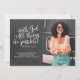 Eine moderne Christliche Abschluss-Ankündigungskarte, mit dem Bibelverse Matthew 19:26 "Mit Gott sind alle Dinge möglich" in weißem, modernem Drehbuch-Schriftart, auf einem Chalkboard-Hintergrund, neben einem Foto des Absolventen. Personalisieren Sie Ihre Abschluss-Details in einem serifenlosen Schriftart.