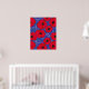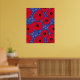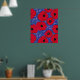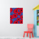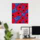 Große Wandkunst, um ein Zuhause oder Büro aufzuhellen. Handgezeichnete rote Mohnblumen mit schwarzen Zentren auf einem tiefvioletten Hintergrund. Kleine weiße Kreise und kleine grüne Blätter vervollständigen das Design. Wählen Sie eine beliebige Größe, da sich das Muster in jede Richtung wiederholt. Dieses Design lässt sich auch gut auf andere Wanddekorationen oder Produkte übertragen.