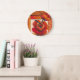 Mohnblumen-Blumen auf TAN und orange Hintergrund Große Wanduhr