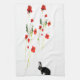 Tuch, das schöne rote Mohnblumen mit einem niedlichen schwarzen Häschenkaninchen, von meiner ursprünglichen Glasmalerei kennzeichnet. ©Annabel Töpfer