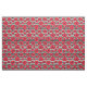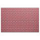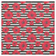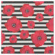 Ein Blumengewebe, das rote Mohnblumen in den verschiedenen Größen gegen Schwarzweiss-Streifen kennzeichnet.