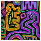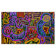 Ritual der Peyoten, Ritual der Vögel, Schamanensymbole, Rot-Gelb-Blau, Orangennacht, Boho-Dekoration, Jungfrau, Vagabond-Volkskunst, Pfeile, Indie-Kunst, mola inspiriert, Kuna indische Mola.