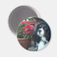 Ein hübscher Cavalier mit einigen schönen rosa Blume. Was für ein niedlicher kleiner Magnet für Ihren Kühlschrank!