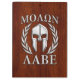 Ein kühner, spanianischer Kriegshelm Molon Labe Lorbeerausdruck maskiert. Die silberfarbene Grafik im antiken Applique-Stil wird auf einem Mahagoni-Holzkorn-Dekor für eine feine Geschenkidee gelegt. Komm und hol sie! Verwenden Sie den Link "Diesen Designer Gefragt", um uns mit Ihren speziellen Designanfragen oder für Hilfe bei Ihren individuellen Anpassungsbedürfnissen zu kontaktieren.