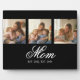 Celebrate motherhood with this elegant Mom Established three Photo Plaque. Featuring a minimal black and white design with modern Elegant script typography, it showcases 3 custom photos of your kids. Easily personalize the est years for a unique Mother’s Day or pregnancy announcement gift. This simple yet stylish plaque is the perfect gift for mom, mama, or mum to carry memories daily.