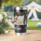 Custom Mom Established Modern Bold Script Black 3 Photo Insulated Tumbler with White Text on a Black Background. Replace the photos with your own and change the years to the year(s) you became a mom (add multiple years if you have more than one child). You can change "mom" to mum or mama if needed (leave the little square in place).