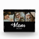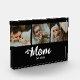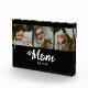 Custom Mom Established Modern Bold Script Black 3 Photo Acrylic Block with White Text on a Black Background. Replace the photos with your own and change the years to the year(s) you became a mom. You can change "mom" to mum or mama if needed (leave the little square in place).