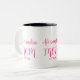 Mom Established Pink Script Name Two-Tone Coffee Zweifarbige Tasse