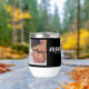Black White Mom Established Script Black Photo Design. Replace the photo with your own of your kids and change the years to the years you became a mom. Use the edit tool if you want a second photo added instead of the one photo two times.