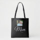 Custom Date Established Mom White Script Photo Gift Tote Bag. Switch out the date and switch "mom" for how you call your mum or mam. Add your photo custom "Est" established year date when your first child was born. Add additional years for each child. If you have any design questions, just sent a message and we'll be delighted to assist.