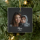 Mom Established Photo Gift ornament. Minimal Elegant Black Script Mom Typography - Add your photo custom "Est" established year when your first child was born. Add additional years for each child. Celebrate the year(s) you became a mom with this classic ornament featuring bold white typography that proudly reads “Mom, Established in 20XX.” Perfect for moms of all ages, this minimalist design is both modern and timeless, making it an ornament you’ll love to see on your tree or somewhere in your home to enjoy every day.