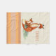 Eine Decke, die mit einem Aquarellbild eines Mutter- und Babyfuchses entworfen wurde. Der junge Fuchs schaut mit Liebe und Wertschätzung auf ihre Mutter. Beide sitzen auf einem Gras. Orange und bräunliche Farben.