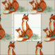 Stoffe mit einem Aquarellbild eines Mutter- und Babyfuchses. Der junge Fuchs schaut mit Liebe und Wertschätzung auf ihre Mutter. Beide sitzen auf einem Gras. Orange und bräunliche Farben.