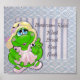 Der niedliche Momma Frosch lasse jedem, die Regeln ihres Badezimmers zu kennen. Hellblauer Hintergrund mit schwarzer Schrift.