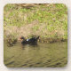 Ein Foto einer Moschusenente, die in einem Teich mit ihren niedlichen Muskovy-Entenlingen auf einem Korkkork-Untersetzer schwimmt