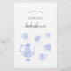 Ein elegantes Baby Tee Party / Babydusche "raten Sie mal, welches: Mama oder Papa" Spielblatt mit einem süßen China Tee Set in periwinkelblau und mit weißer Spitze (das ist ein digitaler Effekt), mit eleganter Kalligraphie.