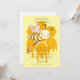 Mami, um Biene und Honig Dipper Overlay auf einer tropfenden Honigwabendusche. Einzigartig, kühn und skurril! Bernsteinfarbenes Gold und Pastellgelb.