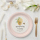 The rim of the plate is decorated with soft blush pink stripes that add a cheerful accent and coordinate beautifully with your party table. Perfect for a baby girls spring summer or anytime of year baby shower. This design combines modern sophistication with whimsical charm.