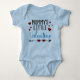 Dieser hübsche, blaue Baby Bodysuit ist mit dem kleinen Valentine von Mommy in den modernen Schriftart in Schwarz und Blau, umgeben von kleinen roten Herzen