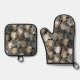 Momona Hawaiian Tropical Pineapel Black Taupe Ofenhandschuh & Topflappen-Set
