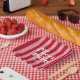 Mon Cherie Let's Party Cherry Red Bold Stripe Pappteller