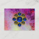 Elegantes, lebendiges, farbenfrohes 3D-Edelsteinsymbol inspiriert von Samurai sensei Miyamoto Musashi (Bushido). Helle Farben, geometrische Kreise, Runden, lila Wirbel, Schnörkel, Blätter und goldene Glitzern. Aquarellmalerei und goldene Folie. 3D Edelsteine von BALDESIGN3D (c), Coole und künstlerische Karte für jeden Zweck.
