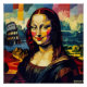 This vibrant digital art piece reimagines the iconic Mona Lisa with vivid and colourful design, bringing new life to the classic portrait. The artist captures the enigmatic smile and human face with a modern twist, creating a unique pop art illustration that pays homage to Da Vinci's masterpiece.